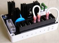 DVR2000E自動(dòng)電壓調節器是電子式固態(tài)微處理器為基礎的控制器件。通過(guò)調節進(jìn)入勵磁機磁場(chǎng)的電流來(lái)控制交流無(wú)刷發(fā)電機的輸出電壓。與絕大部分調壓器不同,調壓器的輸入電流是從與主發(fā)電機相配的永磁高頻發(fā)電機(PMG)發(fā)電供給。