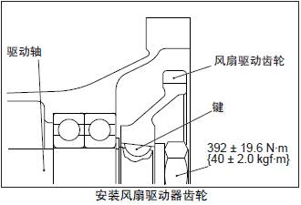 (8) 風(fēng)扇驅動(dòng)齒輪和驅動(dòng)軸的鍵對準后安裝,按照規定的扭矩緊固螺帽。