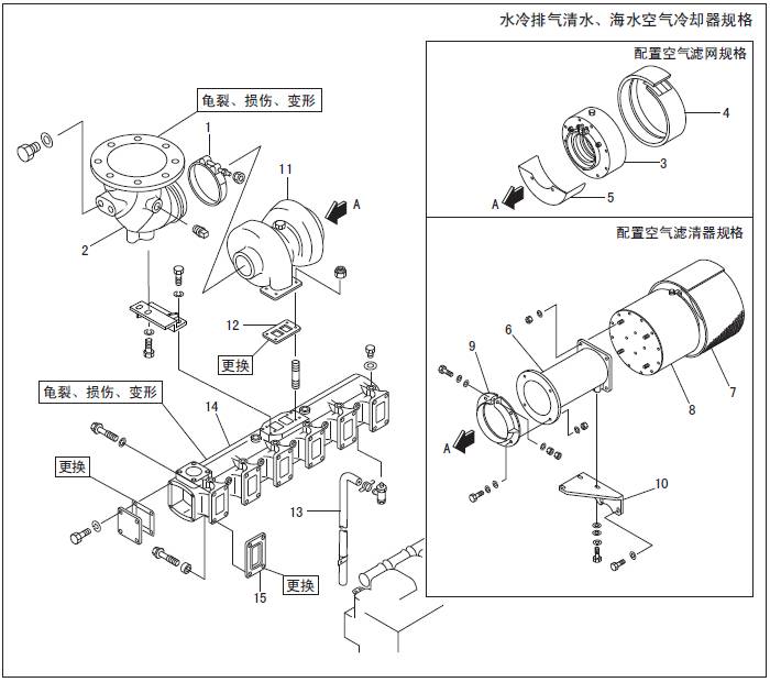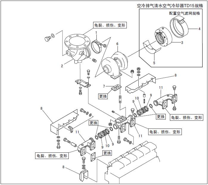 1.2 三菱S6R發(fā)動(dòng)機排氣系統的拆卸,檢測