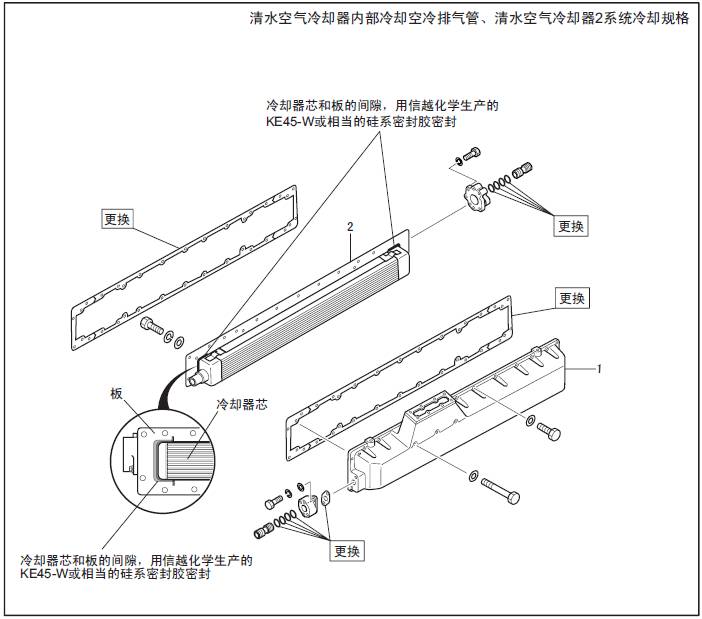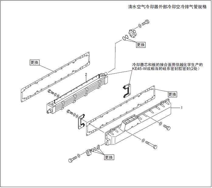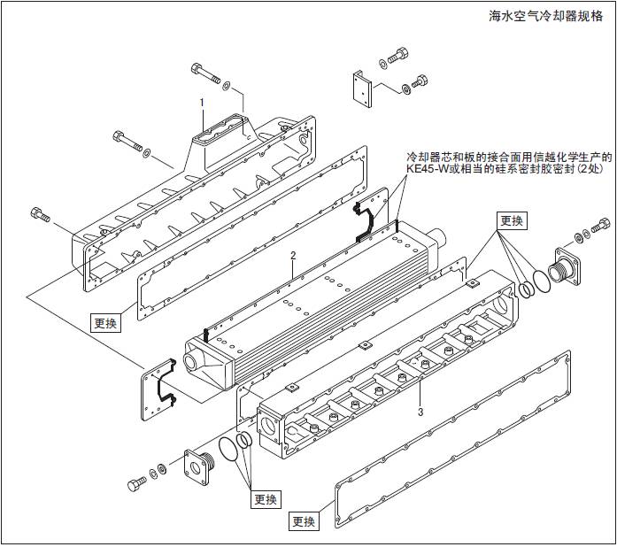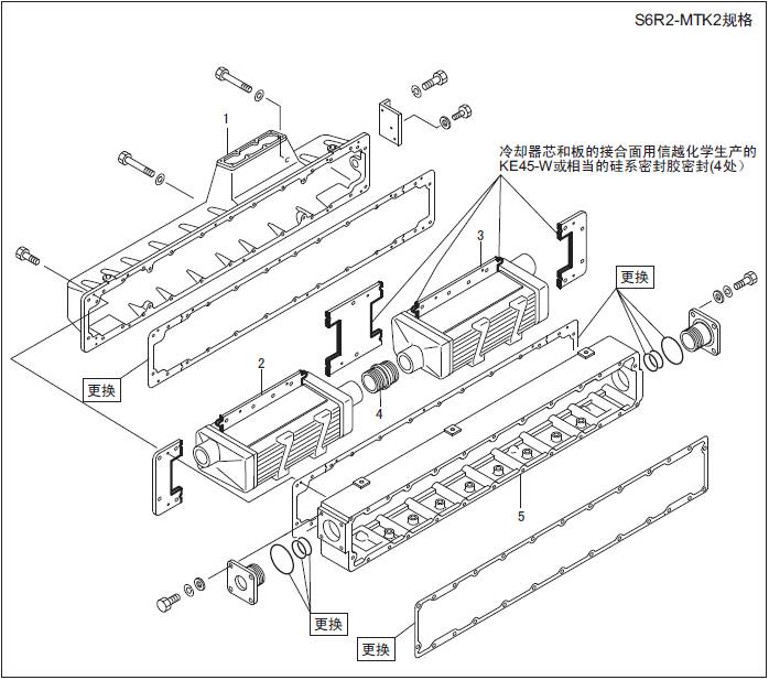 使用清水和使用海水的三菱S6R發(fā)動(dòng)機空氣冷卻器的材質(zhì)和結構是不同的,處理時(shí)要予以注意。本型機器使用清水冷卻器。