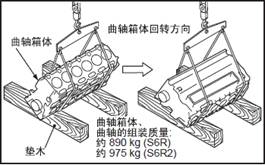 (2) 水平吊起三菱S6R柴油發(fā)動(dòng)機曲軸,小心地從上方吊出。