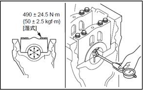 注: 三菱S6R柴油發(fā)動(dòng)機主軸承瓦端蓋的緊固要領(lǐng),參照「發(fā)動(dòng)機本體的組裝」的「安裝三菱S6R柴油發(fā)動(dòng)機主軸承瓦端蓋」項。