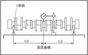 將三菱S6R柴油發(fā)動(dòng)機曲軸的前后端軸頸座在V 型鐵塊上,測量中央軸頸的跳動(dòng)量。參照標準值,跳動(dòng)量較小的用研磨方法修正。