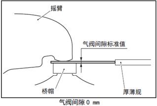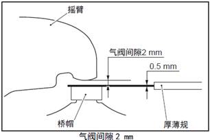 (1) 將0.5 mm的厚薄規插入在橋帽和搖臂之間。(三菱S6R柴油發(fā)動(dòng)機氣閥門(mén)間隙2 mm)