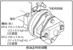 (2) 旋松驅動(dòng)器聯(lián)軸器的螺栓( 長(cháng)),僅僅盤(pán)轉三菱S6R柴油發(fā)動(dòng)機燃油噴油泵,使記號「0」的刻線(xiàn)和指針一致,然后旋緊螺栓( 長(cháng))。