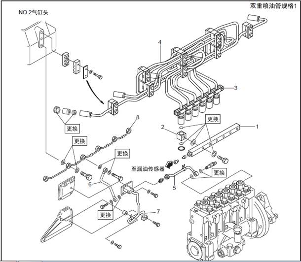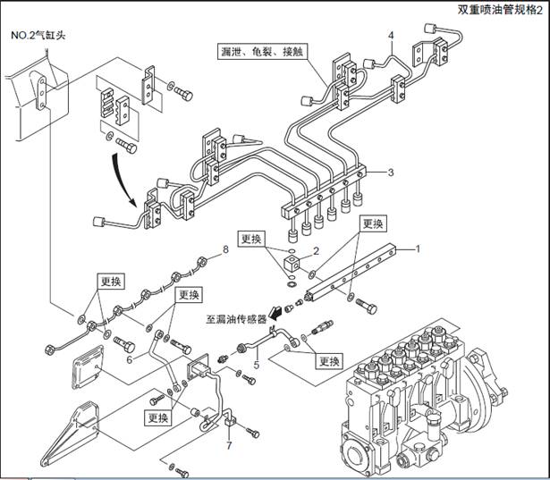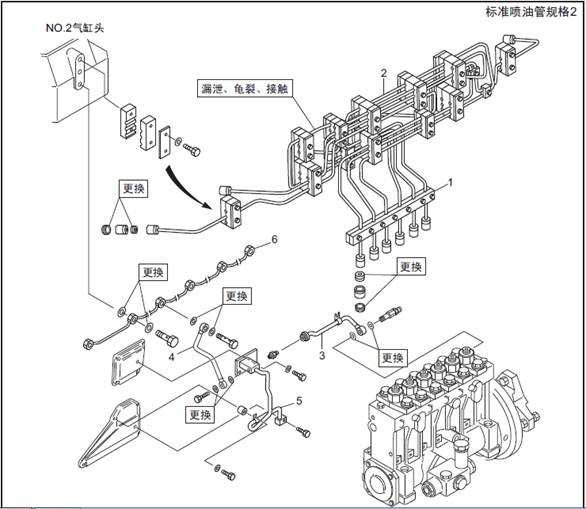 1.1 三菱S6R柴油發(fā)動(dòng)機燃油噴油管、燃油溢流管的拆卸,檢測