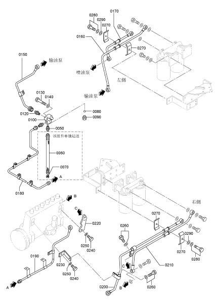 三菱12R發(fā)動(dòng)機燃油濾清器管路