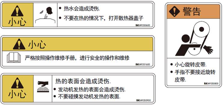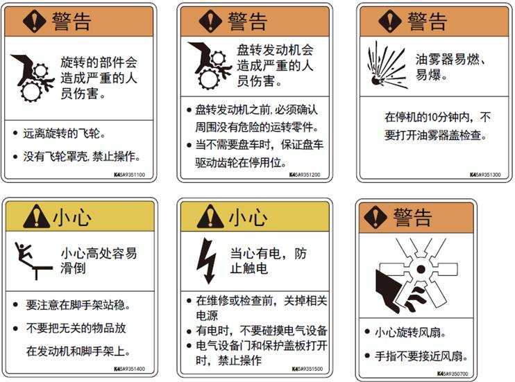 在更換貼有警告標簽的三菱R16柴油發(fā)動(dòng)機零部件時(shí),在新更換的零部件上也要貼上同樣的新的警告標簽。需要購買(mǎi)新的警告標簽時(shí),請向我公司的指定經(jīng)銷(xiāo)商聯(lián)系。