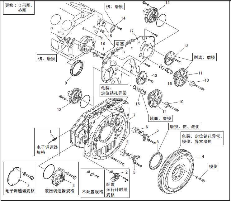 3 三菱S12柴油發(fā)動(dòng)機調速器驅動(dòng)器(液壓三菱S12柴油發(fā)動(dòng)機調速器規格)( 解體、檢修和組裝參照「三菱S12柴油發(fā)動(dòng)機燃油系統」項)蓋板( 電子三菱S12柴油發(fā)動(dòng)機調速器規格)