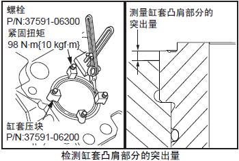 檢測要領(lǐng)參考「三菱S12柴油發(fā)動(dòng)機本體的組裝」的「檢測三菱S12柴油發(fā)動(dòng)機缸套凸肩部分的突出量」項。