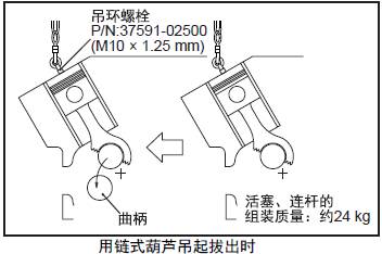 (4) 確認三菱S12柴油發(fā)動(dòng)機連桿大端進(jìn)入了三菱S12柴油發(fā)動(dòng)機缸套內,同時(shí)緩緩向上起吊三菱S12柴油發(fā)動(dòng)機活塞。