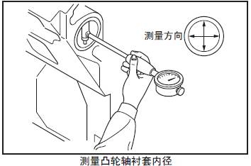 注: 測量?jì)葟綍r(shí),注意不要損傷三菱S12柴油發(fā)動(dòng)機凸輪軸襯套的內面。