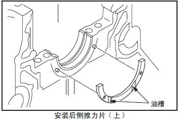 注: 三菱S12柴油發(fā)動(dòng)機推力片( 下) 的油槽分別朝向端蓋的外側安裝。