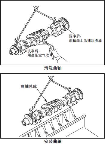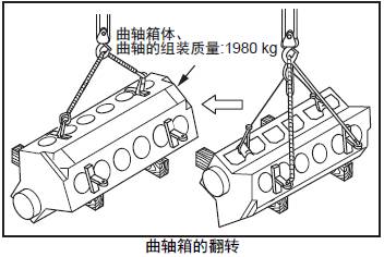 注: 起吊三菱S12柴油發(fā)動(dòng)機曲軸時(shí),為避免損傷三菱S12柴油發(fā)動(dòng)機曲軸,用布吊帶或墊物進(jìn)行起吊。