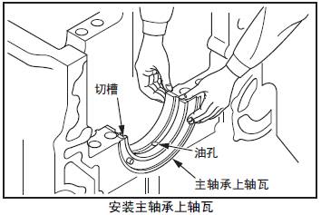 (3) 三菱S12柴油發(fā)動(dòng)機主軸承瓦上軸瓦和三菱S12柴油發(fā)動(dòng)機缸體的嵌槽對準后安裝。