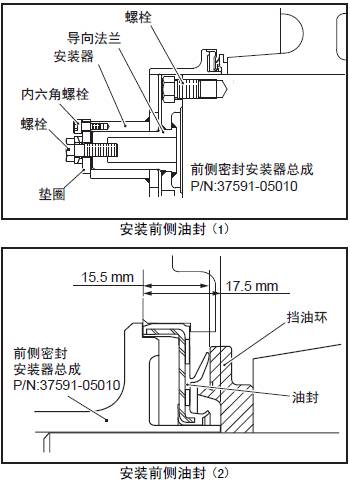 (4) 旋緊導向法蘭上的螺栓,將三菱S12柴油發(fā)動(dòng)機油封裝入前端蓋。