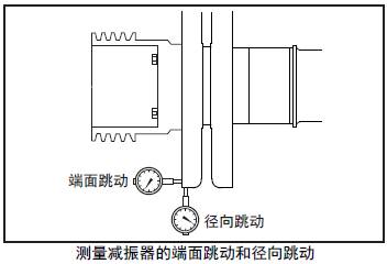測量三菱S12柴油發(fā)動(dòng)機減振器的端面跳動(dòng)和徑向跳動(dòng)。
