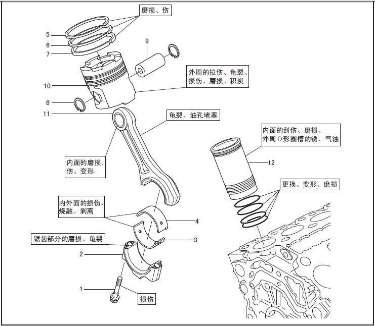 從三菱R16柴油發(fā)動(dòng)機三菱R16柴油發(fā)動(dòng)機缸體側面的檢測口用套筒拆卸三菱R16柴油發(fā)動(dòng)機連桿螺栓,將三菱R16柴油發(fā)動(dòng)機連桿軸