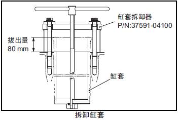 (1) 在三菱R16柴油發(fā)動(dòng)機缸套上安裝三菱R16柴油發(fā)動(dòng)機缸套拆卸器。