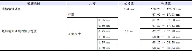 (2) 測量曲柄銷(xiāo)和最后端三菱R16柴油發(fā)動(dòng)機曲軸頸的軸頸寬度。根據最后端三菱R16柴油發(fā)動(dòng)機曲軸頸的軸頸寬度的磨損程度使用加大尺寸三菱R16柴油發(fā)動(dòng)機推力片時(shí),按照加大尺寸三菱R16柴油發(fā)動(dòng)機推力片的規格研磨三菱R16柴油發(fā)動(dòng)機曲軸。