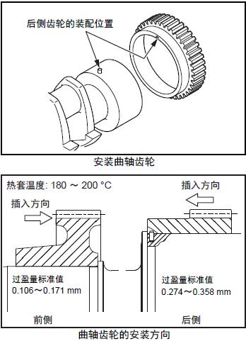 (a) 確認三菱R16柴油發(fā)動(dòng)機曲軸齒輪的安裝方向和位置正確。