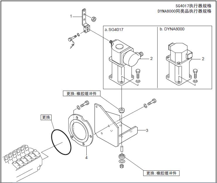 a. 東邦制作所制造SG4017型執行器 b.Woodward制造DYNA8000型執行器的拆卸,檢修