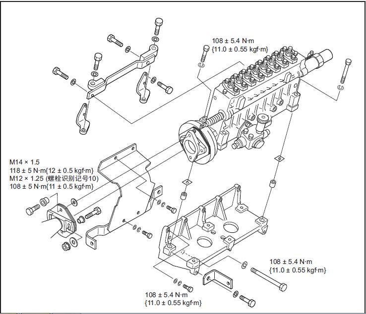 (7) 安裝噴油泵殼體和三菱R16柴油發(fā)動(dòng)機三菱R16柴油發(fā)動(dòng)機缸體之間的支架。