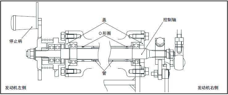 (3) 控制軸的左側端部,和球軸承、卡環(huán)、端板一起,安裝連接調速器執行器的三菱R16柴油發(fā)動(dòng)機連桿柄。