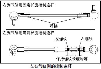 (2) 右氣缸側用固定長(cháng)度(239 mm)的控制三菱R16柴油發(fā)動(dòng)機連桿B-1,連接控制三菱R16柴油發(fā)動(dòng)機連桿柄和控制軸的柄。