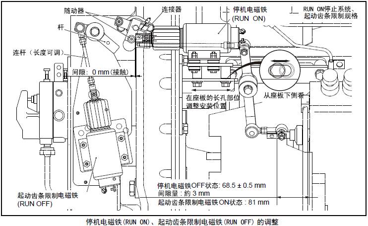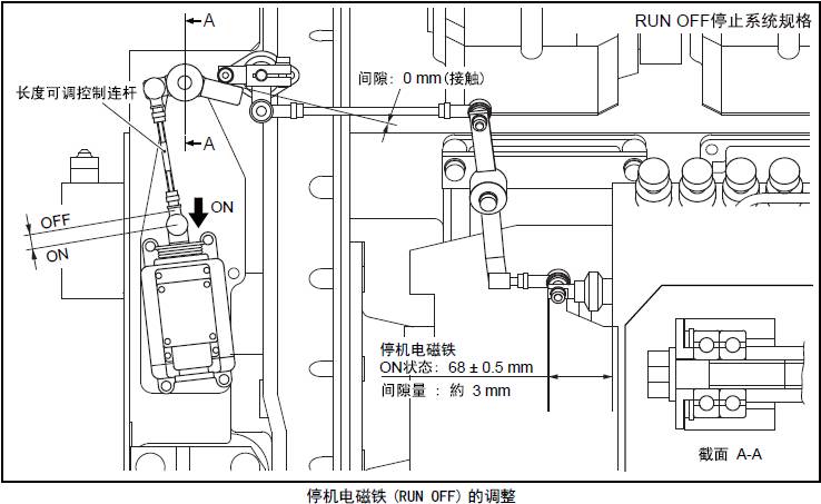 3.3.6 三菱S16柴油機停機電磁鐵(RUN OFF)、起動(dòng)齒條限制電磁鐵(RUN ON) 的調整