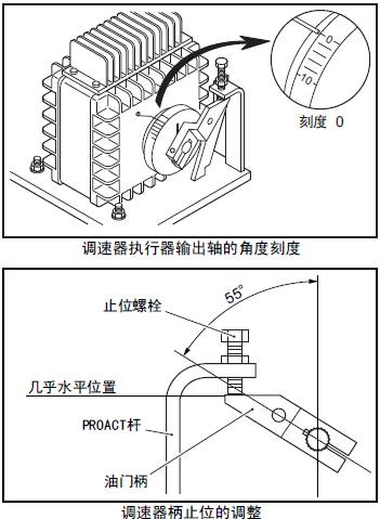 調速器執行器輸出軸的角度刻度「0」( 不噴油位置)時(shí),旋入止位螺栓至調速器柄的上面相接觸并鎖緊。