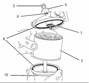 2. 打開(kāi)排放旋塞或從發(fā)動(dòng)機上拆下排放螺塞 (1)。
