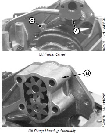 idler cap screw (C) out while removing oil pump
