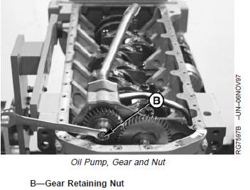 5. Remove nut (B) and pull gear from tapered oil pump