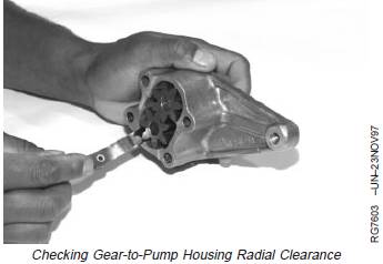 2. Check gear-to-pump housing radial clearance.