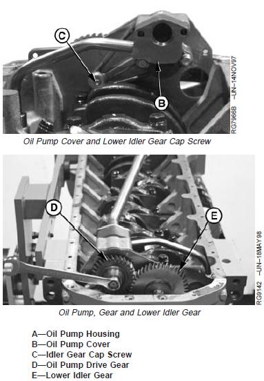 NOTE: The lower idler gear cap screw (C) has to be