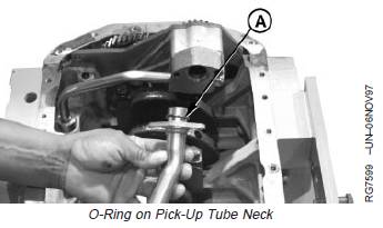 9. Install new O-ring (A) on neck of pick-up tube. Install