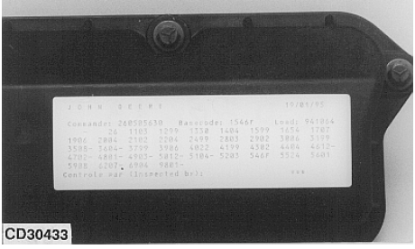 選件代碼標簽固定在閥門(mén)蓋頂部,標有各 OEM John Deere約翰迪爾強鹿柴油發(fā)動(dòng)機出廠(chǎng)時(shí)所安裝的選件,以確保購買(mǎi)時(shí)選擇正確的零件。