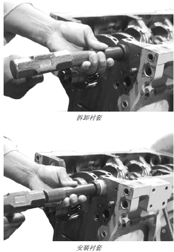 4. 用干凈的機油潤滑襯套,用拆卸襯套時(shí)所用的同樣工具將襯套裝入缸體。
