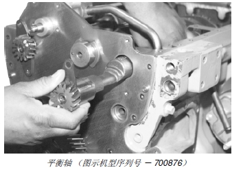 重要提示: 平衡軸必須安裝在原來(lái)拆下的位置。顛倒平衡軸位置會(huì )造成平衡軸襯套和平衡軸過(guò)度磨損。如果懷疑軸的位置安裝不當,應重新安裝平衡軸和襯套。