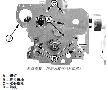 四氣門(mén)John Deere約翰迪爾強鹿柴油發(fā)動(dòng)機用雙頭螺栓固定噴油泵和正時(shí)齒輪蓋。必要時(shí)拆卸。