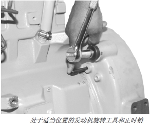 1. 用 JDE81-1 或 JDE83 飛輪旋轉工具和 JDG1571 或JDE81-4 正時(shí)銷(xiāo),將一號活塞鎖定在汽缸壓縮沖程上止點(diǎn)。