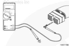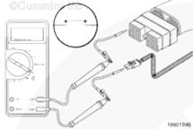 • 從 ECM 上斷開(kāi)康明斯ISB5.9 G CM2180 發(fā)動(dòng)機線(xiàn)束 ECM 1號接頭和 2號接頭。從康明斯ISB5.9 G CM2180 發(fā)動(dòng)機線(xiàn)束上斷開(kāi)爆震傳感器。設置萬(wàn)用表以便測量電阻。