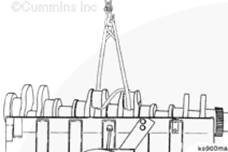 使用銷(xiāo)(零件號 3823818)或等同物,并緩慢轉動(dòng)曲軸,以完成主軸承的安裝,確保它與缸體對準。確保主軸承上的定位舌座入缺口。