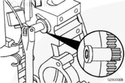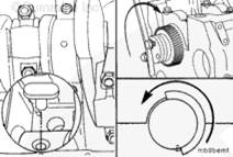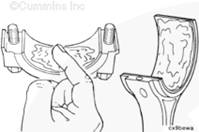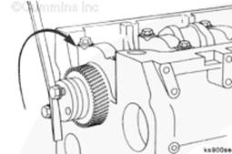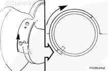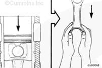 將盤(pán)車(chē)工具(零件號 3824591)插入飛輪殼中,并使其與飛輪齒圈嚙合。然后可以手持 1/2-英寸棘輪扳手或撬棍,轉動(dòng)曲軸。