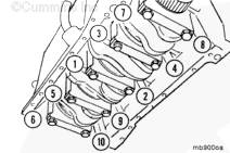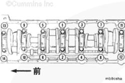 注: 主軸承蓋有位置編號。從缸體前端的 1 號開(kāi)始,編號必須朝向康明斯ISB5.9 G CM2180發(fā)動(dòng)機的凸輪軸側。