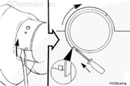 如果使用帶式活塞環(huán)壓縮器,確保帶的內側沒(méi)有掛在活塞環(huán)的缺口并折斷活塞環(huán)。