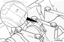 使用平頭改錐。輕輕撞擊軸承端,將其從缸體松開(kāi)。然后,使用手指壓住主軸瓦并轉動(dòng)曲軸,以便旋出主軸承。
