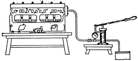 檢驗氣缸體和的裂紋,通常采用水壓試驗方法進(jìn)行。檢驗時(shí),用專(zhuān)用的蓋板將水道口密封。把水壓機水管接在氣缸體的進(jìn)水口,然后將水壓入水套,要求在294~392kPa的壓力下保持5min,不應有滲透現象。如果沒(méi)有水壓試驗設備,也可以將汽油或煤油注入氣缸體和氣缸蓋水套內,經(jīng)半小時(shí)以后,檢視有無(wú)滲透現象。