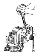 連桿扭曲的校正可將連桿夾在虎鉗上,用扭曲校正器、長(cháng)柄扳鉗或管子鉗進(jìn)行校正,用扭曲校正器校正連桿扭曲的方法如圖所示。